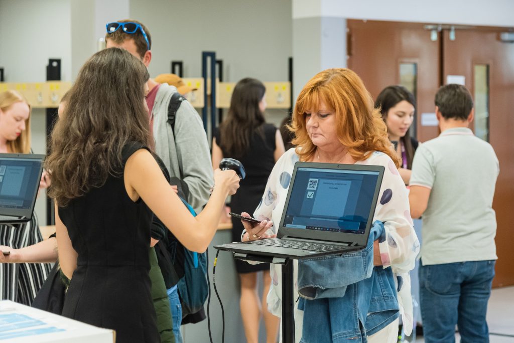 A résztvevők előzetesen regisztrálnak, majd emailben megkapják saját QR kódos belépőjüket, amelyet a helyszínen akár telefonról, akár kinyomtatva fel tudnak mutatni. Érkezéskor a beléptetés gyors, sorban állás nélkül történik, igény esetén automatikus badge nyomtatással.